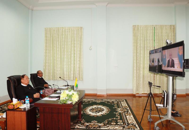 ကျန်းမာရေးနှင့်အားကစားဝန်ကြီးဌာန ပြည်ထောင်စုဝန်ကြီး ဒေါက်တာမြင့်ထွေးသည် ယနေ့နံနက်ပိုင်းတွင် ရခိုင်ပြည်နယ်တွင် လျင်မြန်စွာကူးစက်ဖြစ်ပွားနေသော ကိုဗစ်-19 အား ကာကွယ် ထိန်းချုပ်ရေးလုပ်ငန်းများနှင့် စပ်လျဉ်း၍ ဗဟို၊ ရခိုင်ပြည်နယ်နှင့် အခြား တိုင်းဒေသကြီး/ ပြည်နယ်များမှ ကျန်းမာရေးကဏ္ဍတာဝန်ရှိသူများနှင့် ကွင်းဆင်းအဖွဲ့များ Video conferencing စနစ်ဖြင့် ဆွေးနွေးပွဲသို့ နေပြည်တော်မှ ပါဝင်တက်ရောက်သည်။