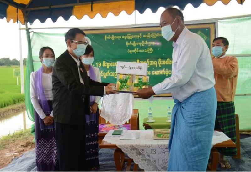 မိုးစပါးမျိုးစေ့ထုတ်တောင်သူများအား ထောက်ပံ့ငွေပေးအပ်ပွဲ အခမ်းအနားကို ယနေ့ နံနက်ပိုင်းတွင် တောင်ငူမြို့နယ် မဟင်ကျေးရွာ၌ ကျင်းပသည်။
