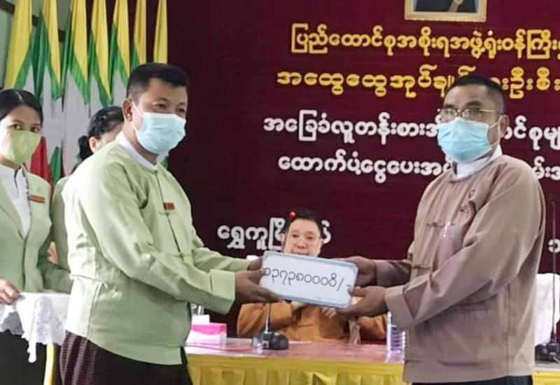 ကချင်ပြည်နယ်၊ ဗန်းမော်ခရိုင်၊ ရွှေကူမြို့အတွင်းရှိ ပုံမှန်ဝင်ငွေမရှိသော အခြေခံလူတန်းစားများအတွက် ထောက်ပံ့ငွေများ ပေးအပ်ခြင်းကို ယမန်နေ့ မွန်းလွဲ ၂ နာရီက မြို့နယ်အထွေထွေ အုပ်ချုပ်ရေး ဦးစီးဌာန အစည်းအဝေး ခန်းမ၌ ကျင်းပခဲ့သည်။