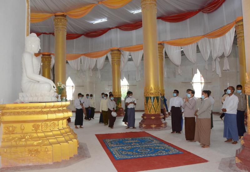 ပြည်ထောင်စုနယ်မြေ၊ နေပြည်တော်၊ ဒက္ခိဏသီရိမြို့နယ်၊ ရာဇသင်္ဂဟလမ်း၊ ကံ့ကော်ပန်းအဝိုင်း အနီးတွင် တည်ထားကိုးကွယ်လျက်ရှိသော ထာဝရငြိမ်းချမ်းရေးစေတီတော် တည်ဆောက်ရေးဦးစီး ကော်မတီ ဥက္ကဋ္ဌ၊ သာသနာရေးနှင့်ယဉ်ကျေးမှုဝန်ကြီးဌာန ပြည်ထောင်စုဝန်ကြီး သူရဦးအောင်ကိုသည် ယနေ့မွန်းလွဲ ၃ နာရီ ခွဲက လုပ်ငန်းကော်မတီ ဥက္ကဋ္ဌ၊ သာသနာရေးဦးစီးဌာန၊ ညွှန်ကြားရေးမှူးချုပ်နှင့် တာဝန်ရှိသူများနှင့်အတူ ထာဝရငြိမ်းချမ်းရေးစေတီတော်သို့ သွားရောက်ကာ သာသနာ့ဗိမာန်အတွင်း ပါကေးခင်းကျင်းထားရှိမှုအခြေအနေအား ကြည့်ရှုစစ်ဆေး၍ စေတီတော်ကြီးအား လက်ဝဲရစ် လှည့်လည်ပူဇော်ပြီး ဂန္ဓကုဋိတိုက် အရှေ့ဘက်မုခ်၊ တောင်ဘက်မုခ်၊ အနောက်ဘက်မုခ်၊ မြောက်ဘက်မုခ်တို့တွင် စကျင်ကျောက်အချောသတ်လုပ်ငန်းများ ဆောင်ရွက်နေမှုနှင့် တံခွန်တိုင် အောက်ခြေ စကျင်ကျောက် အချောသတ်လုပ်ငန်း ဆောင်ရွက်နေမှုတို့ကို ကြည့်ရှုစစ်ဆေးသည်။