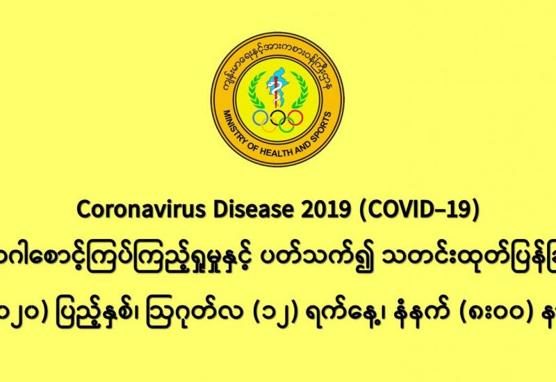 - အမျိုးသားကျန်းမာရေးဓာတ်ခွဲမှုဆိုင်ရာဌာန (ရန်ကုန်) (NHL) မှ (ပထမအသုတ်) ဓာတ်ခွဲ နမူနာ (၆၀၄) ခု၊