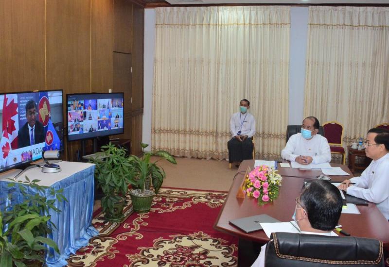 နိုင်ငံခြားရေးဝန်ကြီးဌာန အမြဲတမ်းအတွင်းဝန် ဦးစိုးဟန် သည် ယနေ့ နံနက် ၇ နာရီခွဲတွင် Video Conferencing စနစ်ဖြင့် ကျင်းပသည့် (၁၇) ကြိမ်မြောက် အာဆီယံ-ကနေဒါ ဆွေးနွေးပွဲသို့ နေပြည်တော်ရှိ နိုင်ငံခြားရေးဝန်ကြီးဌာနမှ ပါဝင်တက်ရောက်သည်။