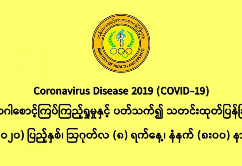၁။ (၉-၈-၂၀၂၀) ရက်နေ့အတွက် COVID-19 ရောဂါ ဓာတ်ခွဲစစ်ဆေးရာတွင် -