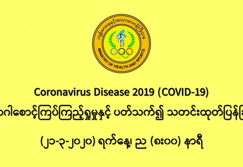 ၁။ ကျန်းမာရေးနှင့်အားကစားဝန်ကြီးဌာနသည် ကမ္ဘာ့နိုင်ငံများတွင် ကူးစက်ပျံ့နှံ့လျက်ရှိသည့် COVID-19 လတ်တလောအသက်ရှူလမ်းကြောင်းဆိုင်ရာ ရောဂါဖြစ်ပွားမှုဖြစ်စဉ်နှင့်ပတ်သက်၍ ရောဂါစောင့်ကြပ်ကြည့်ရှုခြင်း လုပ်ငန်းများအား အပြည်ပြည်ဆိုင်ရာ ဝင်ပေါက်၊ ထွက်ပေါက်ဂိတ် များတွင်လည်းကောင်း၊ ဆေးရုံအခြေပြုအဖြစ်လည်းကောင်း၊ ပြည်သူလူထုအခြေပြု စောင့်ကြပ် ကြည့်ရှုခြင်း လုပ်ငန်းများဖြင့်လည်းကောင်း၊ ပုဂ္ဂလိကဆေးရုံများနှင့် ပူးပေါင်း၍လည်းကောင်း ဆောင်ရွက်လျက်ရှိပါသည်။