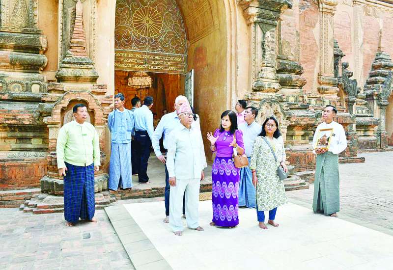 မတ် ၂၁ ရက်က နေပြည်တော်၌ ကျင်းပသော ၂၀၂၅ အလွန် ဗဟုဝင်ရိုးကမ္ဘာတွင် မြန်မာနိုင်ငံကြုံတွေ့လာရမည့် စိန်ခေါ်မှုများနှင့်အခွင့်အလမ်းများ သုံးသပ်ဆွေးနွေးပွဲတက်ရောက်ခဲ့သည့် နီပေါဝန်ကြီးချုပ်ဟောင်း Mr. Madhav Kumar Nepal နှင့် အဖွဲ့သည် ယနေ့နံနက်ပိုင်းတွင် ပုဂံရှေးဟောင်းယဉ်ကျေးမှုနယ်မြေရှိ ထီးလိုမင်းလိုဘုရားသို့ သွားရောက်ဖူးမြော်ကြသည်။