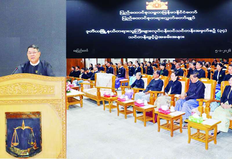 ပြည်ထောင်စုတရားစီရင်ရေးဥပဒေကို ပဉ္စမအကြိမ် ပြင်ဆင်သည့် ဥပဒေ (မူကြမ်း) နှင့် စပ်လျဉ်းသည့် အပြီးသတ်ညှိနှိုင်းအစည်းအဝေးကို ယနေ့နံနက် ၁၀ နာရီတွင် နေပြည်တော်ရှိ ဥပဒေရေးရာဝန်ကြီးဌာန အစည်းအဝေးခန်းမ၌ ကျင်းပသည်။