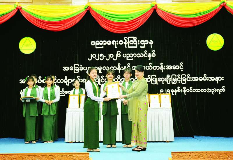 ၂၀၂၅-၂၀၂၆ ပညာသင်နှစ် အခြေခံပညာမူလတန်းနှင့် အလယ်တန်းအဆင့် အင်္ဂလိပ်စာစွမ်းရည်ပြိုင်ပွဲနှင့် သင်္ချာစွမ်းရည်ပြိုင်ပွဲ(ဗဟိုအဆင့်) ဂုဏ်ပြုဆုချီးမြှင့်ပွဲကို ယနေ့နံနက်ပိုင်းတွင် နေပြည်တော်ရုံးအမှတ်(၁၃) ပညာရေးဝန်ကြီးဌာန အစည်းအဝေးခန်းမ၌ ကျင်းပသည်။