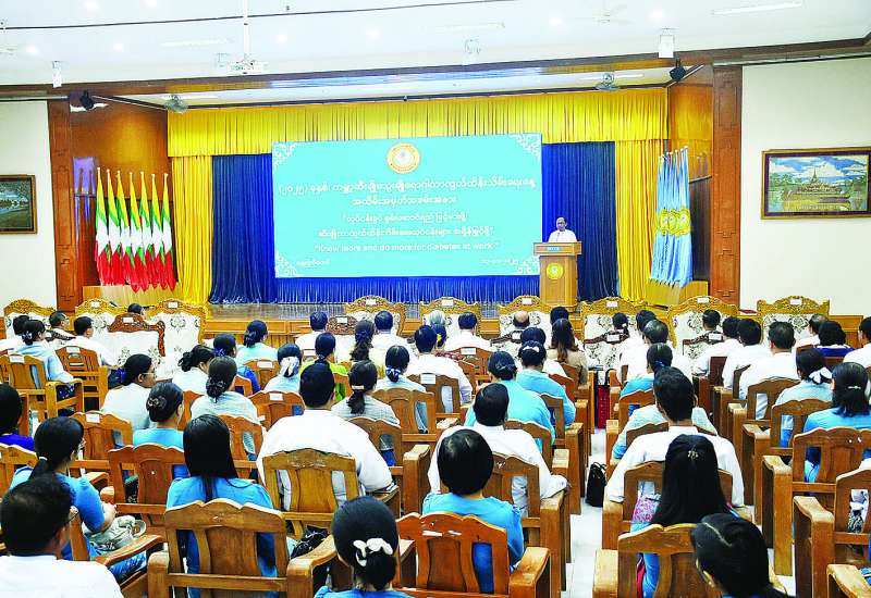 (၂၀၂၅)ခုနှစ် ကမ္ဘာ့ဆီးချိုသွေးချိုရောဂါကာကွယ်ထိန်းသိမ်းရေးနေ့ အထိမ်းအမှတ် အခမ်းအနားကို ယနေ့နံနက် ၉ နာရီတွင် ကျန်းမာရေးဝန်ကြီးဌာန ရုံးအမှတ်(၄) အစည်းအဝေးခန်းမ၌ ကျင်းပသည်။