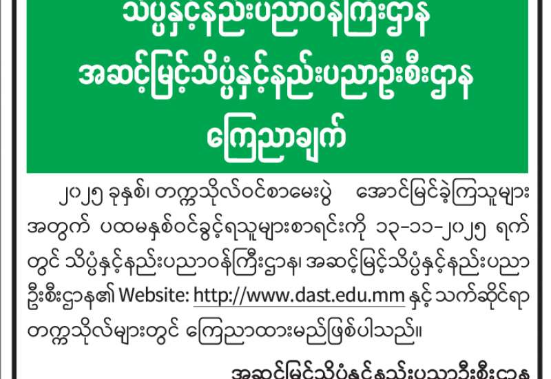 သိပ္ပံနှင့်နည်းပညာဝန်ကြီးဌာန အဆင့်မြင့်သိပ္ပံနှင့်နည်းပညာဦးစီးဌာန ကြေညာချက်