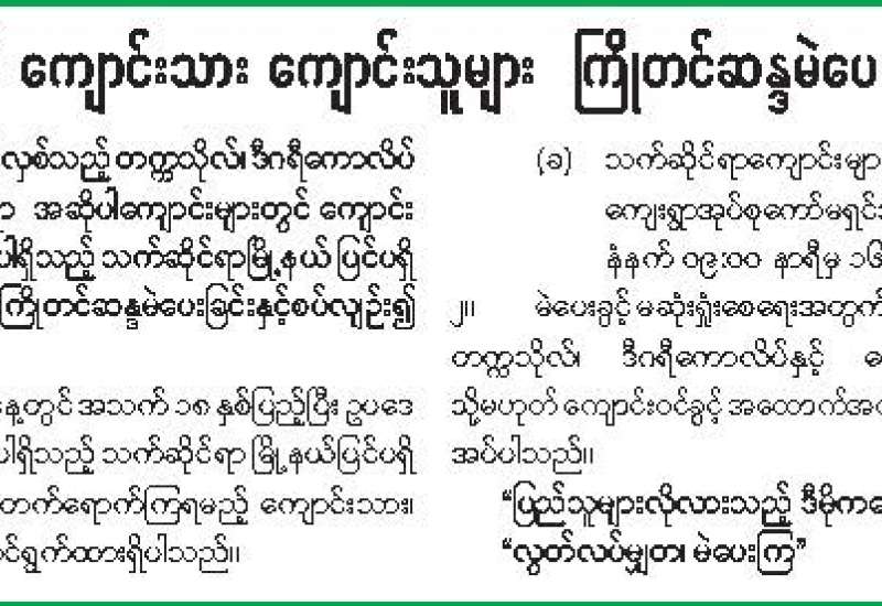 တက္ကသိုလ်၊ ဒီဂရီကောလိပ်၊ ကောလိပ် ကျောင်းသား ကျောင်းသူများ ကြိုတင်ဆန္ဒမဲပေးနိုင်ရေးဆောင်ရွက်ရမည့် အချက်များ