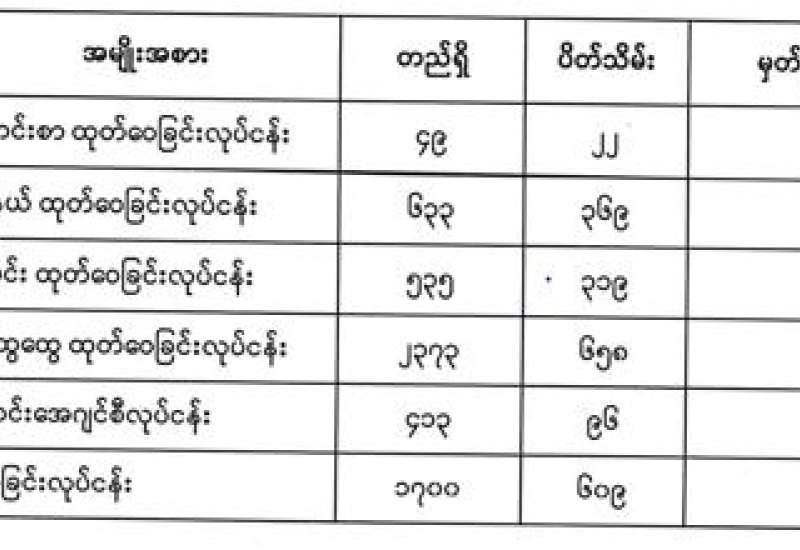ရန်ကုန်မြို့နှင့် မန္တလေးမြို့အတွက် ရည်ညွှန်းလက်ကားဈေးနှုန်းများနှင့် ပြည်ထောင်စုနယ်မြေ နေပြည်တော်၊ တိုင်းဒေသကြီး/ပြည်နယ် မြို့တော်များအတွက် ရည်ညွှန်းလက်လီဈေးနှုန်းများ