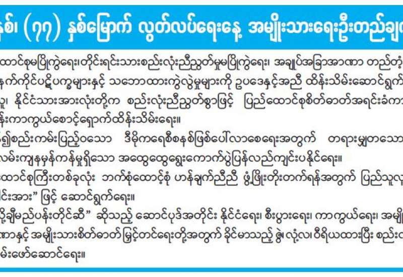၂၀၂၅ ခုနှစ်၊ (၇၇) နှစ်မြောက် လွတ်လပ်ရေးနေ့ အမျိုးသားရေးဦးတည်ချက် (၅) ရပ်