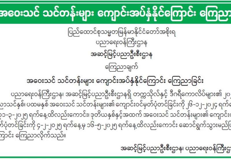 အဝေးသင် သင်တန်းများ ကျောင်းအပ်နှံနိုင်ကြောင်း ကြေညာ
