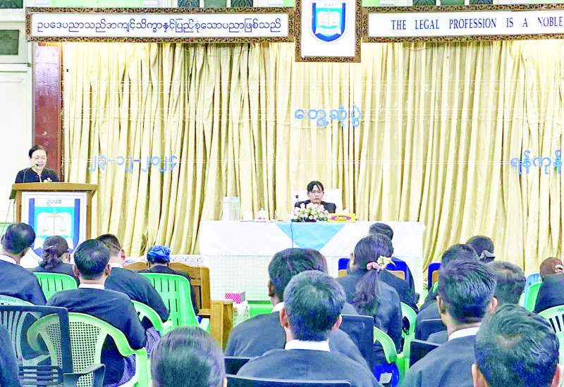 တရားမအမှုလိုက်(လက်တွေ့) ဘာသာရပ်သင်တန်းဖွင့်ပွဲနှင့် ဥပဒေရေးရာဝန်ကြီးဌာန ပြည်ထောင်စုဝန်ကြီးနှင့် ပြည်ထောင်စုရှေ့နေချုပ်နှင့် ရန်ကုန်တိုင်းဒေသကြီးအတွင်းရှိ ဥပဒေအရာရှိများ တွေ့ဆုံပွဲ အခမ်းအနားကို ယနေ့နံနက် ၁၁ နာရီတွင် ရန်ကုန်တိုင်းဒေသကြီး ဥပဒေချုပ်ရုံး မြေညီထပ်ရှိ အစည်းအဝေးခန်းမ၌ ကျင်းပသည်။