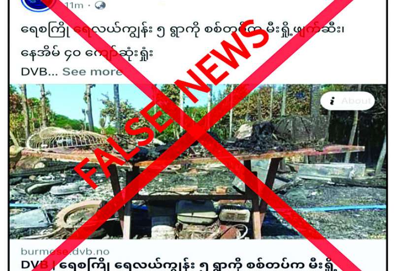 မကွေးတိုင်းဒေသကြီး ရေစကြိုမြို့နယ် ရေလယ်ကျွန်းဒေသရှိ ကျေးရွာငါးရွာကို လုံခြုံရေးတပ်ဖွဲ့ဝင်များက မီးရှို့ဖျက်ဆီးခဲ့သဖြင့် နေအိမ် ၄၀ ကျော် မီးလောင်ပျက်စီးခဲ့ကြောင်း တရားမဝင်ပြည်ဖျက်မီဒီယာများက မဟုတ်မမှန်ရေးသားဖြန့်ဝေနေသည်ကို တွေ့ရှိရသည်။