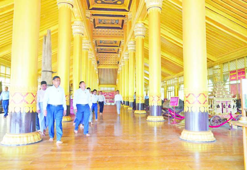 ဆောက်လုပ်ရေးဝန်ကြီးဌာန ပြည်ထောင်စုဝန်ကြီးဦးမျိုးသန့်သည် ပဲခူးတိုင်းဒေသကြီး လမ်းပန်းဆက်သွယ်ရေးဝန်ကြီး ဦးတင်ဆွေနှင့်အတူ ယနေ့တွင် ပဲခူးမြို့ရှိ ကမ္ဘောဇသာဒီနန်းတော် ပြုပြင်ဆောင်ရွက်နေသည့် လုပ်ငန်းခွင်သို့ သွားရောက်စစ်ဆေးသည်။