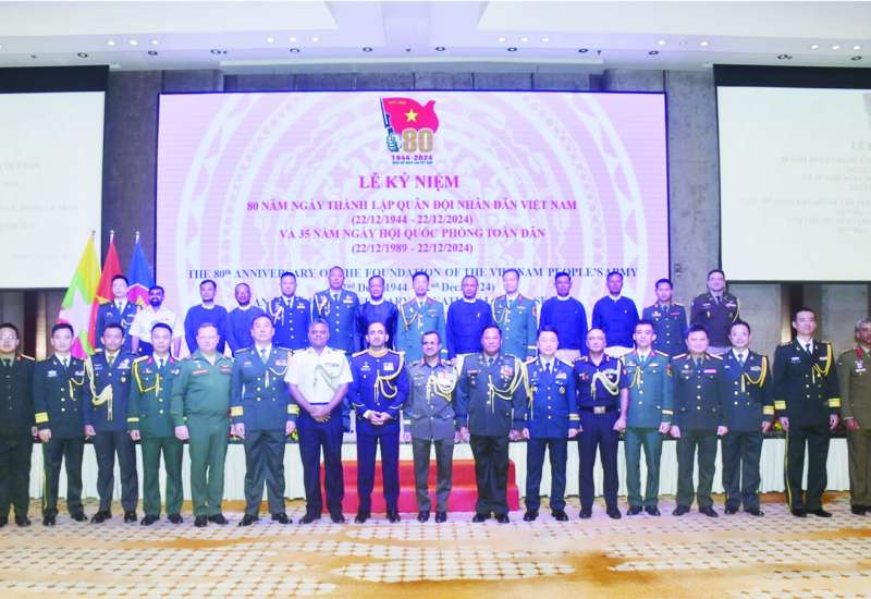 နှစ် (၈၀) ပြည့် ဗီယက်နမ်ပြည်သူ့တပ်မတော်နေ့အထိမ်းအမှတ်နှင့် ဗီယက်နမ်ဆိုရှယ်လစ်သမ္မတနိုင်ငံ၏ (၃၅) နှစ်မြောက် အမျိုးသားကာကွယ်ရေးနေ့ အထိမ်းအမှတ်ပွဲကို ယမန်နေ့ညပိုင်းတွင် ရန်ကုန်မြို့ရှိ Melia Hotel ၌ ပြုလုပ်ရာ ရန်ကုန်တိုင်းစစ်ဌာနချုပ်တိုင်းမှူး ဗိုလ်ချုပ် ဇော်ဟိန်းနှင့် ဗီယက်နမ်စစ်သံမှူး Senior Col.Dao Van Duy ၊ ဗီယက်နမ်သံအမတ်ကြီး H.E.Ly Quoc Tuan ၊ တာဝန်ရှိသူများ၊ ဗီယက်နမ်စစ်သံရုံးနှင့် DSAC အဖွဲ့ဝင်များနှင့် ဖိတ်ကြားထားသူများ တက်ရောက်ကြသည်။