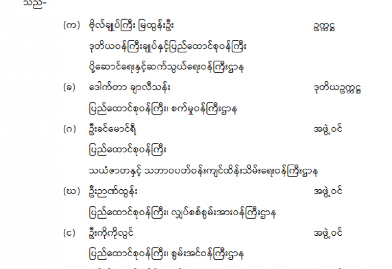 ဒုတိယဝန်ကြီးချုပ်နှင့် ပြည်ထောင်စုဝန်ကြီး ခန့်အပ်တာဝန်ပေးခြင်း