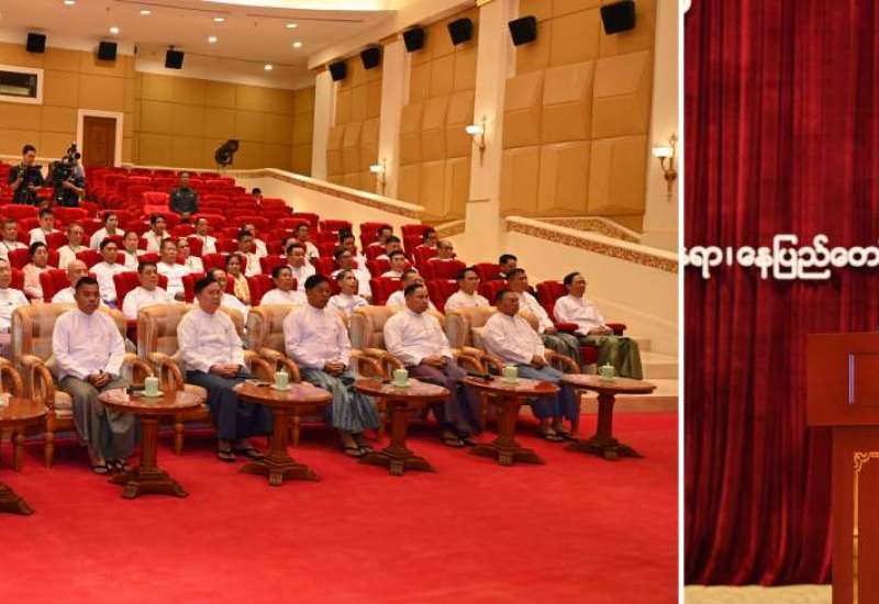 မြန်မာနိုင်ငံသတင်းမီဒီယာကောင်စီဝင်များ ကတိသစ္စာပြုခြင်းအခမ်းအနားကို ယနေ့မွန်းလွဲပိုင်းတွင် နေပြည်တော်ရှိ နိုင်ငံတော်စီမံအုပ်ချုပ်ရေးကောင်စီဥက္ကဋ္ဌရုံး သဘင်ဆောင်၌ကျင်းပပြုလုပ်ရာ နိုင်ငံတော်စီမံအုပ်ချုပ်ရေးကောင်စီဥက္ကဋ္ဌ နိုင်ငံတော်ဝန်ကြီးချုပ် ဗိုလ်ချုပ်မှူးကြီးမင်းအောင်လှိုင် တက်ရောက်အမှာစကားပြောကြားသည်။