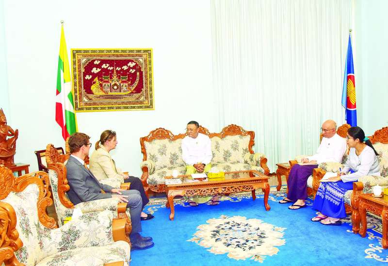 နိုင်ငံခြားရေးဝန်ကြီးဌာန ဒုတိယဝန်ကြီး ဦးကိုကိုကျော်သည် တာဝန်ပြီးဆုံး၍ မြန်မာနိုင်ငံမှ ပြန်လည်ထွက်ခွာတော့မည့် အပြည်ပြည်ဆိုင်ရာ ကြက်ခြေနီကော်မတီ (ICRC) ၏ မြန်မာနိုင်ငံဆိုင်ရာ ဌာနေကိုယ်စားလှယ် Ms. Elena Ajmone Sessera နှင့် မြန်မာနိုင်ငံဆိုင်ရာ ဌာနေကိုယ်စားလှယ်အသစ် Mr. Arnaud de Baecque တို့ကို ယနေ့ မွန်းလွဲ ၁ နာရီတွင် နေပြည်တော်ရှိ နိုင်ငံခြားရေးဝန်ကြီးဌာန၌ လက်ခံတွေ့ဆုံသည်။