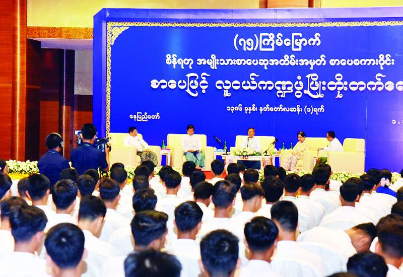 (၇၅) ကြိမ်မြောက် စိန်ရတုအမျိုးသားစာပေဆုအထိမ်းအမှတ် “စာပေဖြင့် လူငယ်ကဏ္ဍဖွံ့ဖြိုးတိုးတက်ရေး” စာပေစကားဝိုင်းဆွေးနွေးပွဲကို ယနေ့မွန်းလွဲပိုင်းတွင် နေပြည်တော်ရှိ အပြည်ပြည်ဆိုင်ရာ ကွန်ဗင်းရှင်းဗဟိုဌာန(၁) Ruby Hall ၌ ကျင်းပသည်။