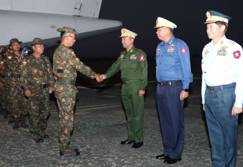 ဖိလစ်ပိုင်နိုင်ငံတွင် နိုဝင်ဘာ၁၂ ရက်မှ ၂၃ ရက်ထိကျင်းပခဲ့သည့် (၃၂)ကြိမ်မြောက် အာဆီယံနိုင်ငံတပ်မတော်(ကြည်း)များ သေနတ်ပစ်ပြိုင်ပွဲ (32nd ASEAN Armies Rifle Meet - 32nd AARM)ကို ဝင်ရောက်ယှဉ်ပြိုင်ခဲ့သည့် မြန်မာ့တပ်မတော်သေနတ်ပစ်အသင်းသည် ယနေ့ညပိုင်းတွင် နေပြည်တော်လေဆိပ်သို့ ပြန်လည်ရောက်ရှိရာ လေဆိပ်တွင် ကာကွယ်ရေးဦးစီးချုပ်ရုံး(ကြည်း)မှ ဒုတိယဗိုလ်ချုပ်ကြီး ထိန်ဝင်း၊ စစ်ဦးစီအရာရှိချုပ်(ရေ) ဒုတိယဗိုလ်ချုပ်ကြီး အေးမင်းထွေး၊ စစ်ဦးစီးအရာရှိချုပ်(လေ) ဒုတိယဗိုလ်ချုပ်ကြီး ဇော်ဝင်းမြင့်နှင့် တပ်မတော်အရာရှိကြီးများက လေဆိပ်၌ ကြိုဆိုနှုတ်ဆက်ကြသည်။