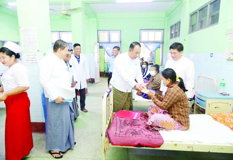 အလုပ်သမားဝန်ကြီးဌာန ပြည်ထောင်စုဝန်ကြီး ဦးမြင့်နောင်သည် ယမန်နေ့မွန်းလွဲပိုင်းတွင် မန္တလေးတိုင်းဒေသကြီး အောင်မြေသာစံမြို့နယ်ရှိ လူမှုဖူလုံရေးအဖွဲ့ပိုင် အလုပ်သမားဆေးရုံကြီးမှ ဝန်ထမ်းများအားတွေ့ဆုံပြီး ဆေးရုံတက်ရောက်ကုသနေသော လူနာများကို ကြည့်ရှုအားပေးသည်။