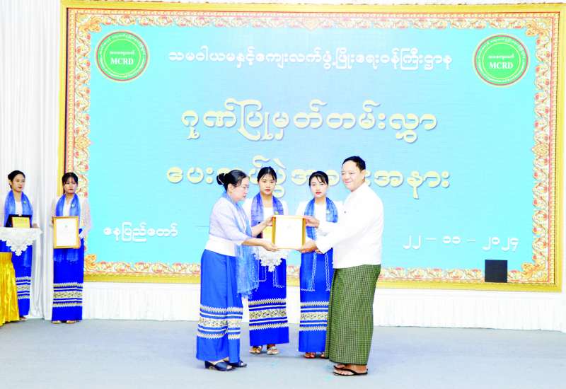 ရာဂီမုန်တိုင်းဒဏ်ကြောင့် ပြည်ထောင်စုနယ်မြေနေပြည်တော်အတွင်း သဘာဝဘေးဖြစ်ပွားခဲ့ပြီး ရေဘေးကယ်ဆယ်ရေးလုပ်ငန်းများနှင့် ပြန်လည်ထူထောင်ရေးလုပ်ငန်းများတွင် ပါဝင်ကူညီဆောင်ရွက်ခဲ့သော သမဝါယမနှင့် ကျေးလက်ဖွံ့ဖြိုးရေးဝန်ကြီးဌာနမှ ဝန်ထမ်းများအား ဂုဏ်ပြုမှတ်တမ်းလွှာပေးအပ် ပွဲအခမ်းအနားကို ယနေ့နံနက်ပိုင်းက ဝန်ကြီးဌာန စုပေါင်းအစည်းအဝေးခန်းမ၌ကျင်းပရာ ပြည်ထောင်စုဝန်ကြီး ဦးလှမိုး၊ ဒုတိယဝန်ကြီး ဦးမြင့်စိုးနှင့် တာဝန်ရှိသူများ၊ ဝန်ထမ်းများ တက်ရောက်ကြသည်။