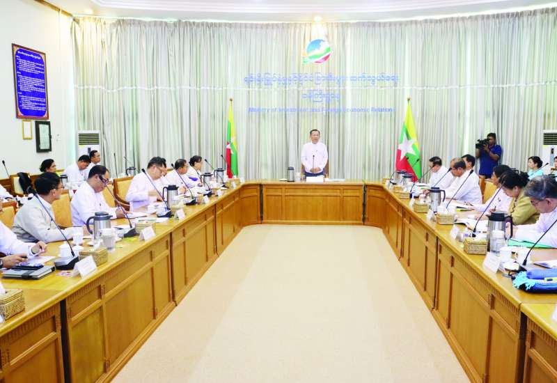 (၂/၂၀၂၄)ကြိမ်မြောက် အာဆီယံစီးပွားရေးအသိုက်အဝန်း (အေအီးစီ) ၂၀၂၅ အကောင်အထည်ဖော်ရေးလုပ်ငန်းကော်မတီများ ညှိနှိုင်းအစည်းအဝေးကို ရင်းနှီးမြှုပ်နှံမှုနှင့် နိုင်ငံခြားစီးပွားဆက်သွယ်ရေးဝန်ကြီးဌာန ပြည်ထောင်စုဝန်ကြီး ဒေါက်တာကံဇော် ဦးဆောင်၍ ယနေ့မွန်းလွဲ ၂ နာရီတွင် နေပြည်တော်ရှိ ရင်းနှီးမြှုပ်နှံမှုနှင့် နိုင်ငံခြားစီးပွားဆက်သွယ်ရေးဝန်ကြီးဌာန နေပြည်တော်၌ကျင်းပရာ အစည်းအဝေးသို့ ဒုတိယဝန်ကြီးများနှင့် တာဝန်ရှိသူများ တက်ရောက်ကြသည်။