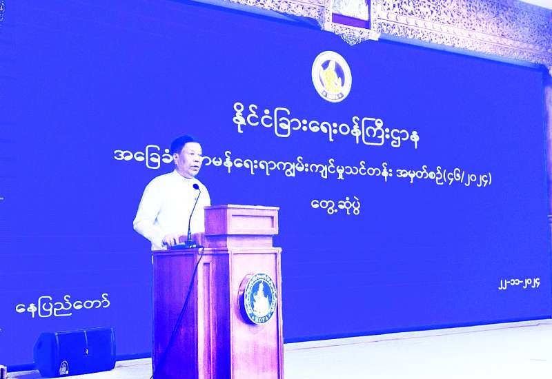 ဒုတိယဝန်ကြီးချုပ်နှင့် ပြည်ထောင်စုဝန်ကြီးဦးသန်းဆွေနှင့် အခြေခံသံတမန်ရေးရာ ကျွမ်းကျင်မှုသင်တန်းအမှတ်စဉ်(၄၆/၂၀၂၄) ရန်ကုန်တန်းခွဲနှင့် နေပြည်တော်တန်းခွဲရှိ သင်တန်းသား သင်တန်းသူများတွေ့ဆုံပွဲကို ယနေ့နံနက် ၁၀ နာရီခွဲတွင် နေပြည်တော်ရှိ နိုင်ငံခြားရေးဝန်ကြီးဌာန လောကနတ်ခန်းမ၌ ကျင်းပရာ ဒုတိယဝန်ကြီးများနှင့် တာဝန်ရှိသူများ၊ သင်တန်းသားသင်တန်းသူ စုစုပေါင်း ၁၄၀ တို့ တက်ရောက်ကြသည်။