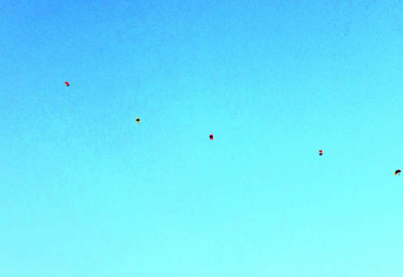 အမျိုးသားအားကစားပွဲတော် ဖွင့်ပွဲအခမ်းအနားတွင် အလွတ်ခုန်လေထီး စစ်သည်များ ပွဲတော်အလံ သယ်ဆောင်၍ ကွင်းအတွင်း ဆင်းသက်မည့်အစီအစဉ် ကြိုတင်လေ့ကျင့်နေမှုမြင်ကွင်းများ