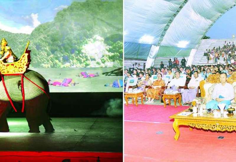 နိုင်ငံတော်စီမံအုပ်ချုပ်ရေးကောင်စီဒုတိယဥက္ကဋ္ဌ ဒုတိယဝန်ကြီးချုပ် ဒုတိယဗိုလ်ချုပ်မှူးကြီး စိုးဝင်းနှင့်ဇနီး ဒေါ်သန်းသန်းနွယ်တို့သည် ယနေ့ညပိုင်းတွင် နေပြည်တော်စည်ပင်သာယာရေးကော်မတီရှိ လဟာပြင်ဇာတ်ရုံ၌ကျင်းပလျက်ရှိသည့် ၂၀၂၄ ခုနှစ်၊ (၂၅) ကြိမ်မြောက် ငွေရတုအထိမ်းအမှတ် မြန်မာ့ရိုးရာယဉ်ကျေးမှု အဆို ၊ အက ၊ အရေး ၊ အတီးပြိုင်ပွဲ၏ ဗုဒ္ဓဝင်ဆယ်ဘွဲ့လာ “မဟာဇနက” ဇာတ်တော်ကြီးပြိုင်ပွဲသို့ တက်ရောက် ကြည့်ရှုအားပေးသည်။