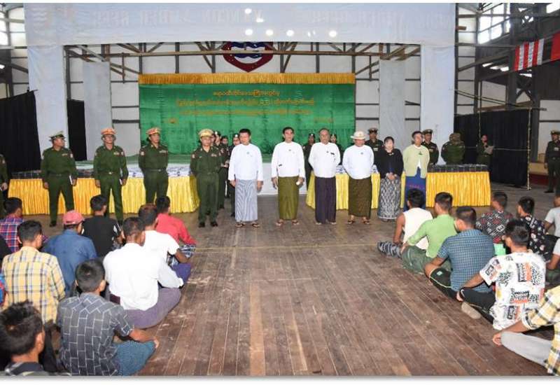 ဧရာဝတီတိုင်းဒေသကြီးအတွင်းမှ ပြည်သူ့စစ်မှုထမ်းသင်တန်း အမှတ်စဉ် (၆/၂၀၂၄) သို့ တက်ရောက်မည့် နိုင်ငံ့သားကောင်းရတနာများအား ယနေ့နံနက်ပိုင်းတွင် အနောက်တောင်တိုင်းစစ်ဌာနချုပ် တပ်နယ်အားကစားရုံ၌ တိုင်းဒေသကြီးဝန်ကြီးချုပ် ဦးတင်မောင်ဝင်း၊ တိုင်းမှူး ဗိုလ်ချုပ် ဝေလင်းနှင့် တာဝန်ရှိသူများက သွားရောက်တွေ့ဆုံအမှာစကား ပြောကြားသည်။