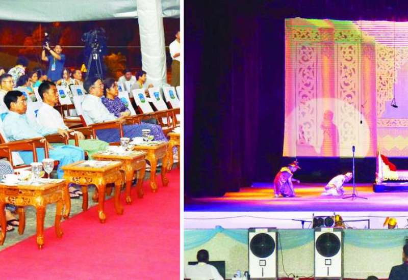 နိုင်ငံတော်စီမံအုပ်ချုပ်ရေးကောင်စီအတွင်းရေးမှူးဗိုလ်ချုပ်ကြီး အောင်လင်းဒွေးနှင့် ဇနီးသည် ယနေ့ညပိုင်းတွင် နေပြည်တော်စည်ပင်သာယာရေးကော်မတီ လဟာပြင်ဇာတ်ရုံ၌ ကျင်းပသည့် ၂၀၂၄ ခုနှစ်၊ (၂၅)ကြိမ်မြောက် ငွေရတုအထိမ်းအမှတ် မြန်မာ့ရိုးရာယဉ်ကျေးမှု အဆို၊ အက၊ အရေး၊ အတီးပြိုင်ပွဲ၏ “မဟာ ဇနက” ဇာတ်တော်ကြီးပြိုင်ပွဲသို့ တက်ရောက်ကြည့်ရှုအားပေးသည်။
