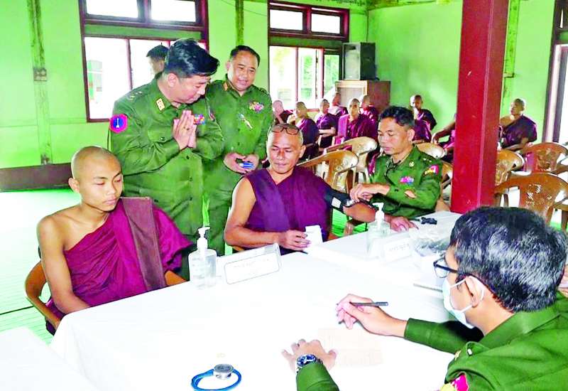 ကချင်ပြည်နယ် မြစ်ကြီးနားမြို့ပေါ်ရှိ သံဃာတော်များအား ယနေ့နံနက်ပိုင်းတွင် မြောက်ပိုင်းတိုင်းစစ်ဌာနချုပ် နယ်လှည့်ဆေးကုသရေးအဖွဲ့က အဆိုပါမြို့ရှိ ဇေယျမင်္ဂလာကျောင်းတိုက်အတွင်း၌ ကျန်းမာရေးစောင့်ရှောက်မှုလုပ်ငန်းများ ဆောင်ရွက်ပေးသည်။