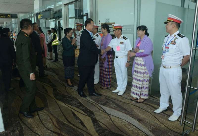 မြန်မာနိုင်ငံမှ ဒုတိယအကြိမ် လက်ခံကျင်းပသည့် (၁၈) ကြိမ်မြောက် အာဆီယံရေတပ်ဦးစီးချုပ်များအစည်းအဝေး 18th ASEAN Navy Chief's Meeting (18th ANCM) သို့ တက်ရောက်ရန် ဘရူနိုင်းနိုင်ငံ ယာယီရေတပ်ဦးစီးချုပ် Captain Haji Mohamad Sarif Pudin Bin Matserudin ဦးဆောင်သော ကိုယ်စားလှယ်အဖွဲ့၊ ကမ္ဘောဒီးယားနိုင်ငံ ဒုတိယရေတပ်ဦးစီးချုပ် Vice Admiral Sam Sokha ဦးဆောင်သောကိုယ်စားလှယ်အဖွဲ့၊ ဗီယက်နမ်နိုင်ငံ ဒုတိယရေတပ်ဦးစီးချုပ် Rear Admiral Pham Nhu Xuan ဦးဆောင်သော ကိုယ်စားလှယ်အဖွဲ့၊ လာအိုနိုင်ငံတပ်မတော်မှ ဒုတိယကြည်းတပ်ဦးစီးချုပ် Major General Vanthong Bouttavong ဦးဆောင်သော ကိုယ်စားလှယ်အဖွဲ့၊ ထိုင်းနိုင်ငံရေတပ်မှ Vice Admiral Puchong Pradittheera ဦးဆောင်သော ကိုယ်စားလှယ်အဖွဲ့ ၊ အင်ဒိုနီးရှားနိုင်ငံရေတပ်မှ Captain Taufik Darlem ဦးဆောင်သော ကိုယ်စားလှယ်အဖွဲ့၊ မလေးရှားနိုင်ငံရေတပ်မှ Captain Mohd Irwan Bin Che Mohd Rani ဦးဆောင်သော ကိုယ်စား လှယ်အဖွဲ့နှင့် ဖိလစ်ပိုင်နိုင်ငံရေတပ်မှ Colonel Jose P Navarro ဦးဆောင်သော ကိုယ်စားလှယ်အဖွဲ့တို့သည် အောက်တိုဘာ ၉ ရက် ညနေပိုင်းတွင် နေပြည်တော်သို့ ရောက်ရှိကြရာ စစ်ဦးစီးအရာရှိချုပ် (ရေ) ဗိုလ်ချုပ် အေးမင်းထွေး၊ တပ်မတော် (ရေ) မှ အရာရှိကြီးများနှင့် တာဝန်ရှိသူများက နေပြည်တော်လေဆိပ်တွင် ကြိုဆိုနှုတ်ဆက်ခဲ့ကြကြောင်း သတင်းရရှိသည်။