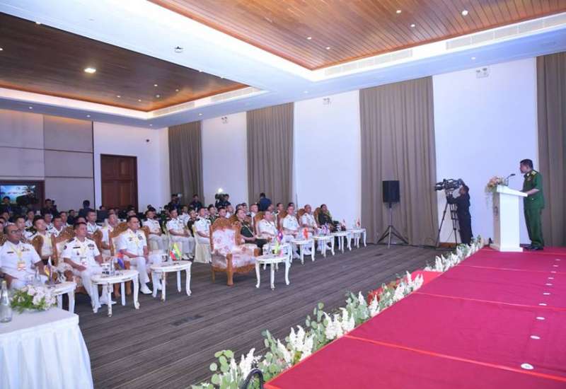 မြန်မာနိုင်ငံမှ ဒုတိယအကြိမ် အိမ်ရှင်အဖြစ် လက်ခံကျင်းပသည့် (၁၈) ကြိမ်မြောက် အာဆီယံရေတပ်ဦးစီးချုပ်များအစည်းအဝေး (18th ASEAN Navy Chief's Meeting) ဖွင့်ပွဲအခမ်းအနားကို ယနေ့နံနက်ပိုင်းတွင် နေပြည်တော်ရှိ M Gallery Hotel ၌ ပြုလုပ်ရာ နိုင်ငံတော်စီမံအုပ်ချုပ်ရေးကောင်စီအဖွဲ့ဝင် ညှိနှိုင်းကွပ်ကဲရေးမှူး (ကြည်း၊ ရေ၊ လေ) ဗိုလ်ချုပ်ကြီး မောင်မောင်အေး တက်ရောက်အမှာစကားပြောကြားသည်။