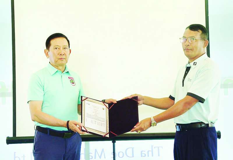မြန်မာနိုင်ငံဂေါက်သီးအားကစား အဖွဲ့ချုပ်ကဂေါက်ကွင်းများတွင် (World Handicap System) ခေါ် ကမ္ဘာသုံးအချက်ရေအကျောပေးစနစ်ကို မြန်မာနိုင်ငံအတွင်းရှိ ဂေါက်သီးအားကစားကွင်းများတွင် အသုံးပြုနိုင်ရေးအတွက် နေပြည်တော်အတွင်းရှိ City Golf Club နှင့် Royal Myanmar Golf Club တို့၌ Course Rating တိုင်းတာပြီးစီးမှု အစီရင်ခံစာ လွှဲပြောင်းပေးအပ်ပွဲကို ယနေ့နံနက် ၉ နာရီတွင် နေပြည်တော် Royal Myanmar Golf Club ၌ ကျင်းပသည်။