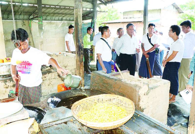 အသက်မွေးဝမ်းကျောင်းလုပ်ငန်းများ ပြန်လည်ထူထောင်ရေးလုပ်ငန်းကော်မတီဥက္ကဋ္ဌ၊ သမဝါယမနှင့်ကျေးလက်ဖွံ့ဖြိုးရေးဝန်ကြီးဌာန ပြည်ထောင်စုဝန်ကြီးဦးလှမိုးသည် တာဝန်ရှိသူများနှင့်အတူ ယနေ့မွန်းလွဲပိုင်းက ပျဉ်းမနားမြို့နယ် ကျွန်းဦးခေတ်မီစံပြကျေးရွာသို့ရောက်ရှိပြီး ရေကြီးရေလျှံရေတိုက်စားမှုများကြောင့် ပျက်စီးဆုံးရှုံးခဲ့ရသည့် ပဲလှော်ဖိုလုပ်ငန်းရှင်များ၊ ကျေးရွာနေပြည်သူများ၏လုပ်ငန်းများ အမြန်ဆုံးပြန်လည် လည်ပတ်နိုင်ရေးအတွက် သမဝါယမဦးစီးဌာနမှ သက်သာသောအတိုးနှုန်းဖြင့် ထုတ်ချေးသည့်ချေးငွေဖြင့် ပဲလှော်ဖိုများပြင်ဆင်ခြင်း၊ အသစ်တည်ထောင်ခြင်း၊ ကုန်ကြမ်းများဝယ်ယူခြင်းနှင့် လုပ်ငန်းများစတင်လည်ပတ်နေမှုကို လှည့်လည်ကြည့်ရှုစစ်ဆေးသည်။