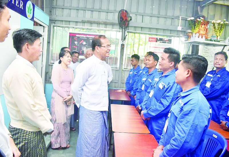 အလုပ်သမားဝန်ကြီးဌာန ဒုတိယဝန်ကြီးဦးဝင်းရှိန်သည် တာဝန်ရှိသူများနှင့်အတူ ယနေ့မွန်းလွဲပိုင်းတွင် ရန်ကုန်တိုင်းဒေသကြီး ဒဂုံမြို့သစ်တောင်ပိုင်းမြို့နယ်ရှိ Good Things Assessment Cen-ter ကို သွားရောက်ကြည့်ရှု စစ်ဆေးသည်။