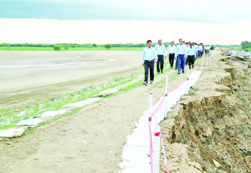စိုက်ပျိုးရေး၊ မွေးမြူရေးနှင့်ဆည်မြောင်းဝန်ကြီးဌာန ပြည်ထောင်စုဝန်ကြီး ဦးမင်းနောင်၊ သယံဇာတနှင့် သဘာဝပတ်ဝန်းကျင်ထိန်းသိမ်းရေးဝန်ကြီးဌာန ပြည်ထောင်စုဝန်ကြီး ဦးခင်မောင်ရီတို့သည် တာဝန်ရှိသူများနှင့်အတူ ယမန်နေ့နံနက်ပိုင်းက မြစ်သားမြို့နယ် ငပြောင်ဆည်ရေသောက်စနစ်အတွင်းရှိ မိုးစပါးစိုက်ခင်းအား သွားရောက်ကြည့်ရှုစစ်ဆေးရာ တာဝန်ရှိသူများက မိုးစပါးအတွက် ရေဆက်လက်ပေးဝေနိုင်ရေး စီမံဆောင်ရွက်ထားရှိမှုအခြေအနေကို ရှင်းလင်းတင်ပြကြသည်။