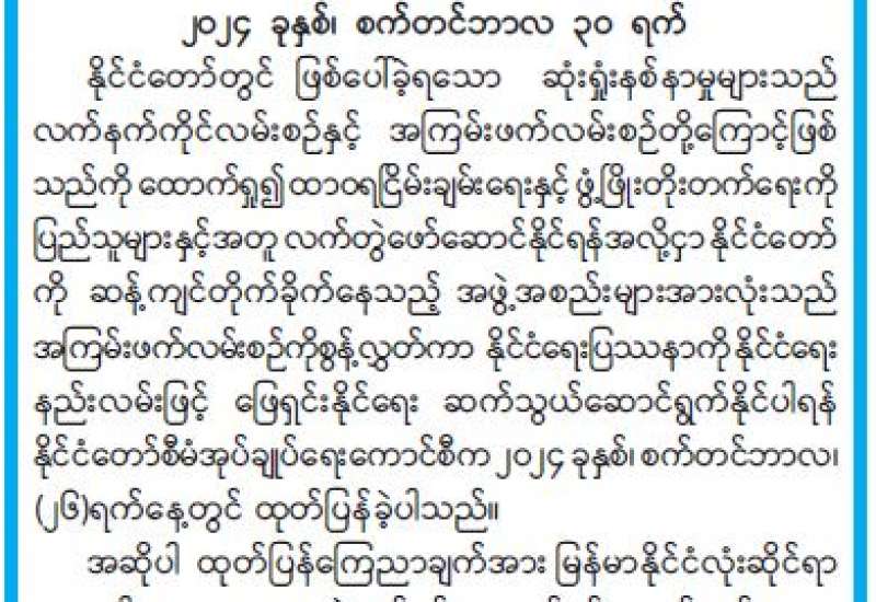 နိုင်ငံရေးပြဿနာအား နိုင်ငံရေးနည်းလမ်းဖြင့်ဖြေရှင်းရန် နိုင်ငံတော်စီမံအုပ်ချုပ်ရေးကောင်စီ၏ ကမ်းလှမ်းဖိတ်ခေါ်ခြင်းအပေါ် မြန်မာနိုင်ငံလုံးဆိုင်ရာ ထေရဝါဒဗုဒ္ဓဘာသာအဖွဲ့ချုပ်နှင့် နယ်စပ်တောင်တန်းဒေသ သာသနာနုဂ္ဂဟအသင်း (ဗဟို) က ကြိုဆိုထောက်ခံကြောင်း သဘောထားများထုတ်ပြန်