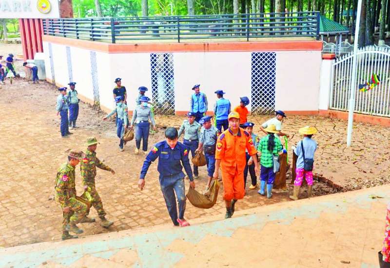 နေပြည်တော်ကောင်စီနယ်မြေအပါအဝင် တိုင်းဒေသကြီးနှင့် ပြည်နယ်များရှိ ရေကြီးရေလျှံမှု ဖြစ်ပေါ်ခဲ့သည့် ရပ်ကွက်/ကျေးရွာများတွင် ကူညီကယ်ဆယ်ရေးလုပ်ငန်းများနှင့် ပြန်လည်ထူထောင်ရေးလုပ်ငန်းများကို အင်တိုက်အားတိုက် တက်ကြွစွာပူးပေါင်းဆောင်ရွက်ပေးလျက်ရှိရာ ယနေ့တွင်လည်း နေပြည်တော်ကောင်စီနယ်မြေ၊ ဇေယျာသီရိမြို့နယ်တွင်လည်းကောင်း၊ ရှမ်းပြည်နယ် (တောင်ပိုင်း)၊ ကလောမြို့နယ်တွင်လည်းကောင်း၊ ကယားပြည်နယ်၊ လွိုင်ကော်မြို့တို့တွင်လည်းကောင်း၊ ပဲခူးတိုင်းဒေသကြီး၊ တောင်ငူမြို့တွင်လည်းကောင်း ဘုန်းတော်ကြီးကျောင်းများ၊ စာသင်ကျောင်းများ၊ ဆေးရုံ၊ ဆေးခန်းများ၊ ဌာနဆိုင်ရာ အဆောက်အဦများတွင် လိုအပ်သည်များကူညီရွှေ့ပြောင်းပေးခြင်းနှင့် သန့်ရှင်းရေးလုပ်ငန်းများ ဆောင်ရွက်ပေးခြင်း၊ လမ်း၊ တံတားများအပေါ်နှင့် ရပ်ကွက်၊ ကျေးရွာများအတွင်း၌ တင်ကျန်ခဲ့သည့်နုန်းများ၊ သစ်ပင်သစ်ကိုင်းများ ဖယ်ရှားပေးခြင်းအပါအဝင် အခြားလိုအပ်သည်များကို တပ်မတော်သားများ၊ မြန်မာနိုင်ငံရဲတပ်ဖွဲ့ဝင်များ၊ မီးသတ်တပ်ဖွဲ့ဝင်များ၊ ကြက်ခြေနီတပ်ဖွဲ့ဝင်များနှင့် လူမှုဝန်ထမ်းကယ်ဆယ်ရေးအဖွဲ့များက ဒေသခံပြည်သူများနှင့်ပူးပေါင်း၍ တက်ကြွစွာ ဆောင်ရွက်ပေးလျက်ရှိသည်။