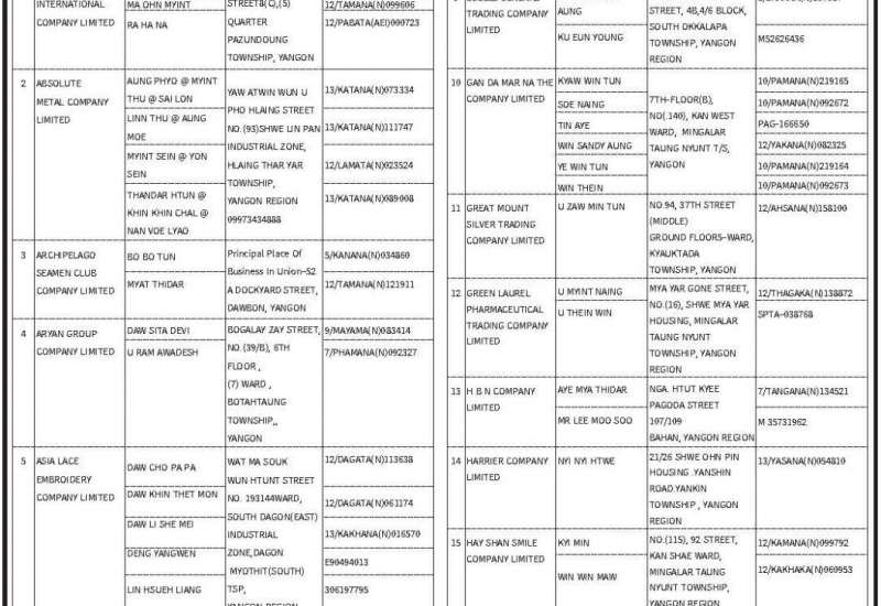 ပို့ကုန်ရငွေ ပြန်လည်ဝင်ရောက်ရန်ကျန်ရှိသော ကုမ္ပဏီ(၁၃၇)ခုအနက် ပို့ကုန်ရငွေစာရင်းရှင်းလင်းပြီးသော ကုမ္ပဏီ (၅၉) ခုနှင့် ယင်းကုမ္ပဏီများ၏ ဒါရိုက်တာအဖွဲ့ဝင်များအား အမည်မည်းစာရင်းမှပယ်ဖျက်ကြောင်း ကြေညာချက်