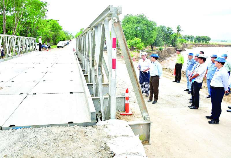 နေပြည်တော်ကောင်စီဥက္ကဋ္ဌ မြို့တော်ဝန် ဦးသန်းထွန်းဦးသည် နေပြည်တော်ကောင်စီဝင် ဗိုလ်မှူးကြီး ရဲမိုး၊ နေပြည်တော်စည်ပင်သာယာရေးကော်မတီ ဒုတိယမြို့တော်ဝန်၊ တာဝန်ရှိသူများနှင့်အတူ ယနေ့နံနက်ပိုင်းတွင် ရေလွှမ်းမိုးမှုကြောင့် ရေတိုက်စားမှုဖြစ်ပေါ်ခဲ့သည့် ဇေယျာသီရိမြို့နယ်ရှိ ပင်လောင်းလမ်းဆုံနှင့် အေးမြင့်သာယာတံတားအကြားတွင် နေပြည်တော်စည်ပင်သာယာရေးကော်မတီမှ ယာဉ်ယန္တရားများဖြင့် ပြန်လည်ပြုပြင်နေမှုကို သွားရောက်ကြည့်ရှုစစ်ဆေးပြီး လိုအပ်သည်များကို မှာကြားသည်။