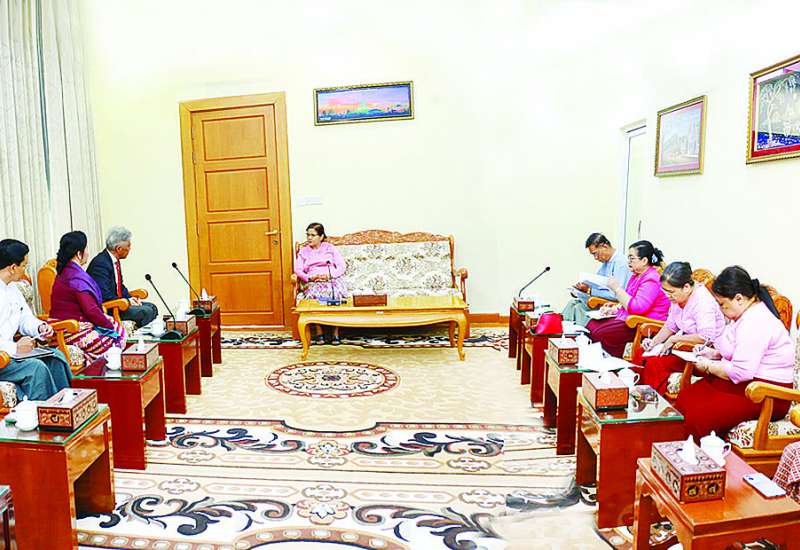 မြန်မာနိုင်ငံတော်ဗဟိုဘဏ်ဥက္ကဋ္ဌ ဒေါ်သန်းသန်းဆွေသည် ယနေ့နံနက်ပိုင်းတွင် မြန်မာနိုင်ငံတော်ဗဟိုဘဏ် အစည်းအဝေးခန်းမ၌ အာဆီယံဘဏ်များအသင်း အထွေထွေ အတွင်းရေးမှူး Mr. Paul C.G.Gwee၊ မြန်မာနိုင်ငံဘဏ်များအသင်းဥက္ကဋ္ဌ ဒေါ်ခင်စောဦးနှင့် အဖွဲ့တို့ကို လက်ခံတွေ့ဆုံသည်။
