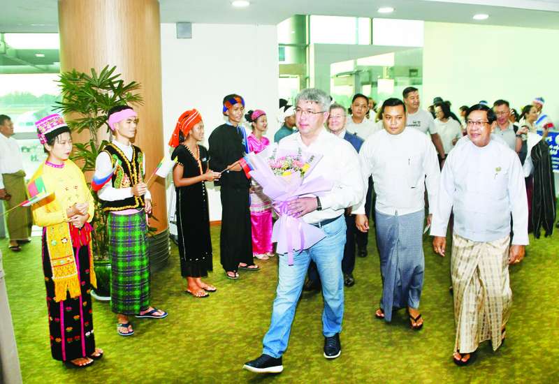 ရုရှားဖက်ဒရေးရှင်းနိုင်ငံ ဘူရားတီးရားပြည်နယ်အကြီးအကဲ H.E.Mr. Alexey Sambuevich Tsydenov ဦးဆောင်သော ကိုယ်စားလှယ်အဖွဲ့သည် ယနေ့ညနေပိုင်းတွင် ရန်ကုန်မြို့သို့ ရောက်ရှိကြရာ ရန်ကုန်တိုင်းဒေသကြီးဝန်ကြီးချုပ် ဦးစိုးသိန်းနှင့် တိုင်းဒေသကြီးအစိုးရအဖွဲ့ဝန်ကြီးများ၊ မြန်မာနိုင်ငံဆိုင်ရာ ရုရှားသံအမတ်ကြီး H.E.Mr. Iskander Azizov နှင့် တာဝန်ရှိသူများ၊ နယ်စပ်ရေးရာဝန်ကြီးဌာန၊ ပြည်ထောင်စုတိုင်းရင်းသားလူငယ်များ စွမ်းရည်ဖွံ့ဖြိုးရေးဒီဂရီကောလိပ်မှ ကျောင်းသား ကျောင်းသူများက ရန်ကုန်အပြည်ပြည်ဆိုင်ရာ လေဆိပ်၌ ကြိုဆိုနှုတ်ဆက်ကြသည်။