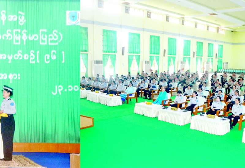 စာရေးဝန်ထမ်း ကြီးကြပ် သင်တန်းအမှတ်စဉ် (၉၆) ၏ သင်တန်းဆင်းပွဲကို ယနေ့နံနက် ၈ နာရီက ရန်ကုန်တိုင်းဒေသကြီး လှည်းကူးမြို့နယ် နိုင်ငံ့ဝန်ထမ်းတက္ကသိုလ်(အောက်မြန်မာပြည်) ရတနာသိင်္ဃခန်းမ၌ ကျင်းပသည်။
