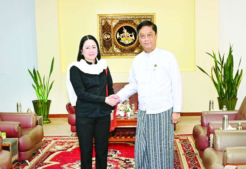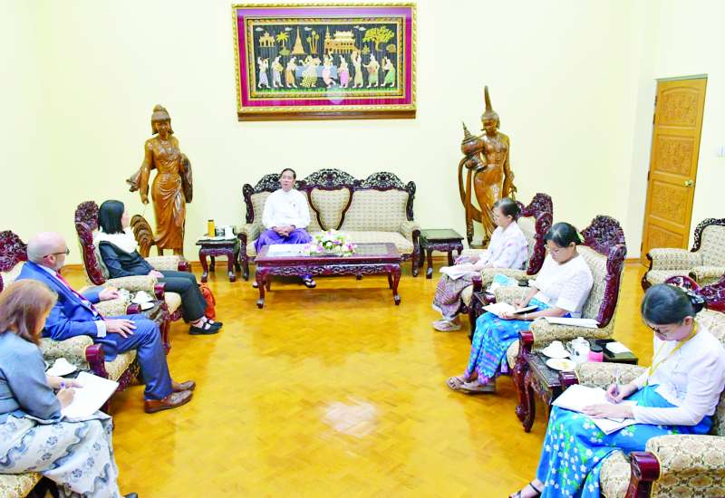 ရင်းနှီးမြှုပ်နှံမှုနှင့် နိုင်ငံခြားစီးပွားဆက်သွယ်ရေးဝန်ကြီးဌာန ပြည်ထောင်စုဝန်ကြီး ဒေါက်တာကံဇော်သည် ဂျီနီဗာမြို့ရှိ UNFPA ရုံး၏ လူသားချင်းစာနာ ထောက်ထားမှုဆိုင်ရာ တုံ့ပြန်ဆောင်ရွက်ရေးဌာန ညွှန်ကြားရေးမှူး Ms. Shoko Yasuda Arakaki နှင့်အဖွဲ့ကို ယနေ့မွန်းလွဲပိုင်းတွင် နေပြည်တော်ရှိ ရင်းနှီးမြှုပ်နှံမှုနှင့် နိုင်ငံခြားစီးပွားဆက်သွယ်ရေးဝန်ကြီးဌာန ရုံးအမှတ် (၁) ၌ လက်ခံတွေ့ဆုံသည်။