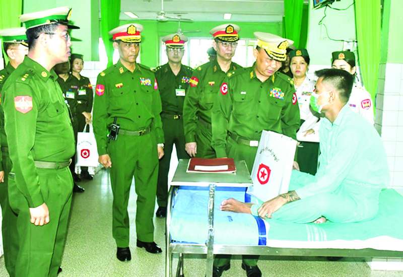 ကယားပြည်နယ် လွိုင်ကော်မြို့ရှိ တပ်မတော်ဆေးရုံ၊ ရန်ကုန်တိုင်းဒေသကြီး မင်္ဂလာဒုံမြို့နယ်ရှိ တပ်မတော်အရိုးရောဂါ အထူးကုဆေးရုံကြီး (ခုတင်-၅၀၀) နှင့် တပ်မတော်ဆေးရုံကြီး (ခုတင်-၁၀၀၀) တို့၌ တက်ရောက်ကုသမှုခံယူလျက်ရှိသော အရာရှိ၊ စစ်သည်၊ မိသားစုများ၊ မြန်မာနိုင်ငံရဲတပ်ဖွဲ့ဝင်များနှင့် ဒေသခံပြည်သူများအား ယနေ့တွင် သက်ဆိုင်ရာ တိုင်းစစ်ဌာနချုပ်များမှ တိုင်းမှူးများနှင့် တာဝန်ရှိသူများက သွားရောက်ကြည့်ရှု၍ တစ်ဦးချင်း၏ရောဂါဖြစ်ပွားမှု၊ ဆေးဝါးကုသပေးထားမှုနှင့် ကျန်းမာရေးတိုးတက်ကောင်းမွန်မှု အခြေအနေများကို ရင်းရင်းနှီးနှီး မေးမြန်းအားပေးစကားပြောကြားပြီး စားသောက်ဖွယ်ရာများပေးအပ်သည်။